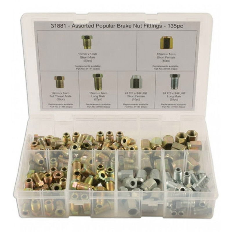 Connect CON-31881 fékcső adapter készlet, M10 x 1.0 és 24TPI x 3/8" UNF, 135 részes *