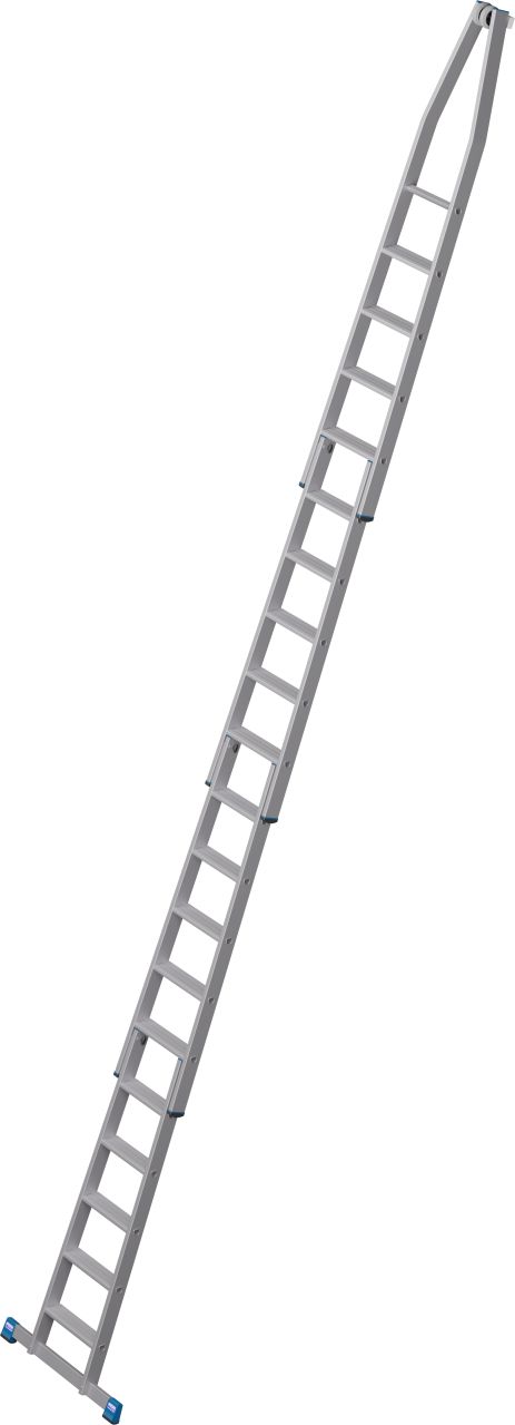 • A létra felső tagja fali vezetőgörgőkkel és kopásálló, puha gumi anyagú érintkező blokkal, ékkivágással, mely házsarkokra és ablakprofilokra helyezhető.