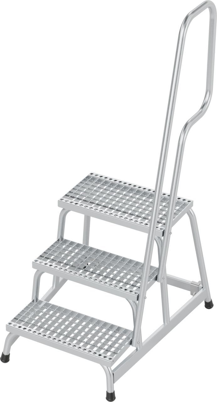 Könnyű, mobil alumínium szerelődobogó igényes ipari alkalmazásokhoz csúszásgátló R13 lépcsőfokokkal és kapaszkodóval. A mély, csúszásmentes rácsos lépcsőfokokkal és a nagyméretű dobogóval ideális minden nedves és olajos munkakörnyezetben.